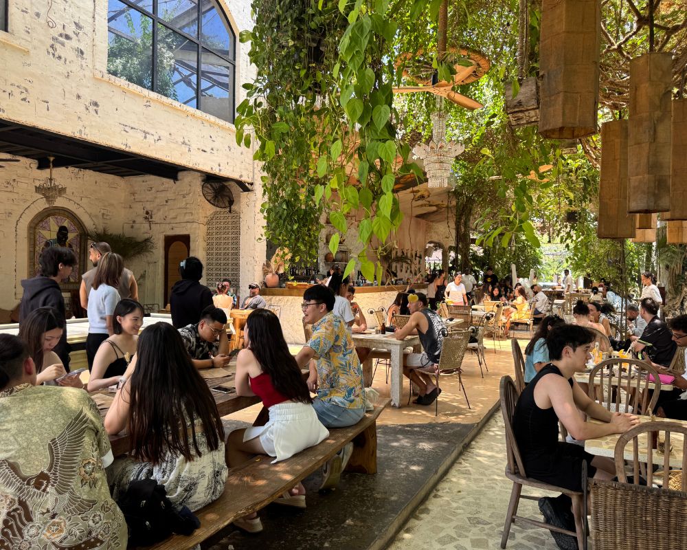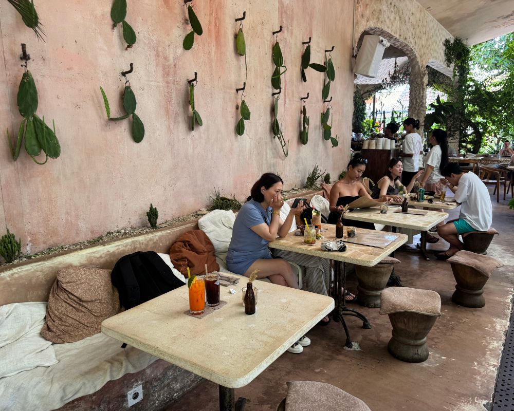 Penny Lane in Canggu is one of those places that instantly catches your eye and keeps you there for hours. From the moment you walk in, you’re surrounded by warm terracotta tones, tall palm trees, and a tropical-meets-bohemian interior that feels straight out of a magazine. Every corner is beautifully styled, making it one of the most photographed cafés in Bali. It’s where design lovers, foodies, and families all find a little slice of paradise.